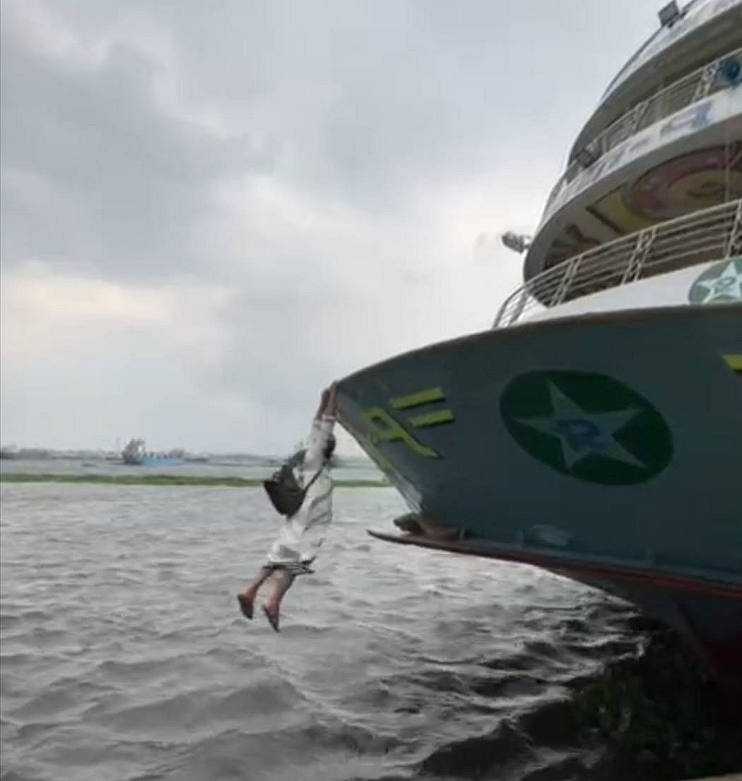 লঞ্চ ধরে ঝুলছিলেন তিনি, পড়ে গেলেন নদীতে