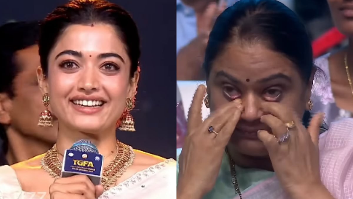 During her speech, Rashmika recalled being trolled and also turned emotional while speaking. She said, "First they trolled my performance, and now the state has given me this award. I've come a long way," prompting an equally emotional reaction from her mother-in-law, who was seen wiping her tears upon hearing Rashmika's heartfelt speech.